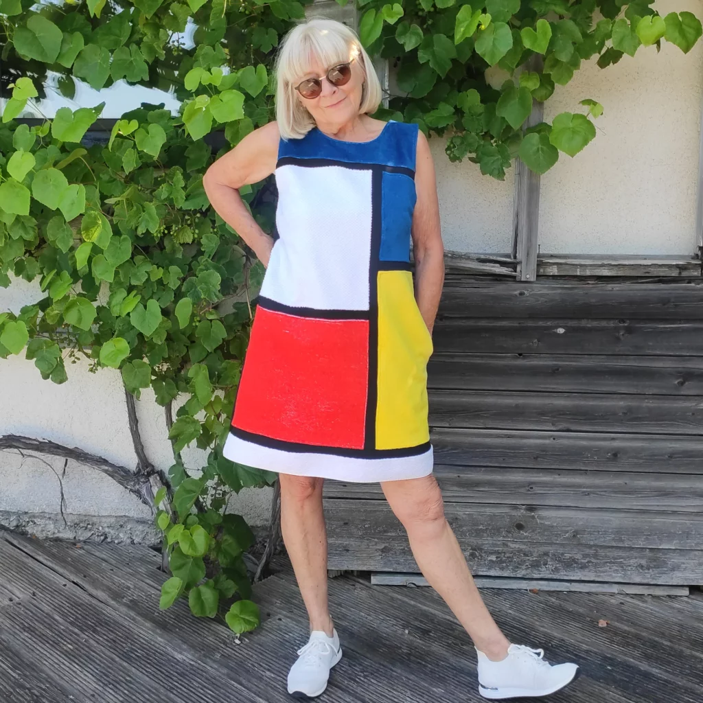 Beliebt sind ihre Mondrian-Kleider, deren Design sich an der Kunst des berühmten Malers orientiert. Erhältlich sind ihre stylishen Bomberjacken, Hosen und Kleider online – Link – und bei Buddy&Murphy, einem grandiosen Second Hand Laden am Linzer Hauptplatz.
